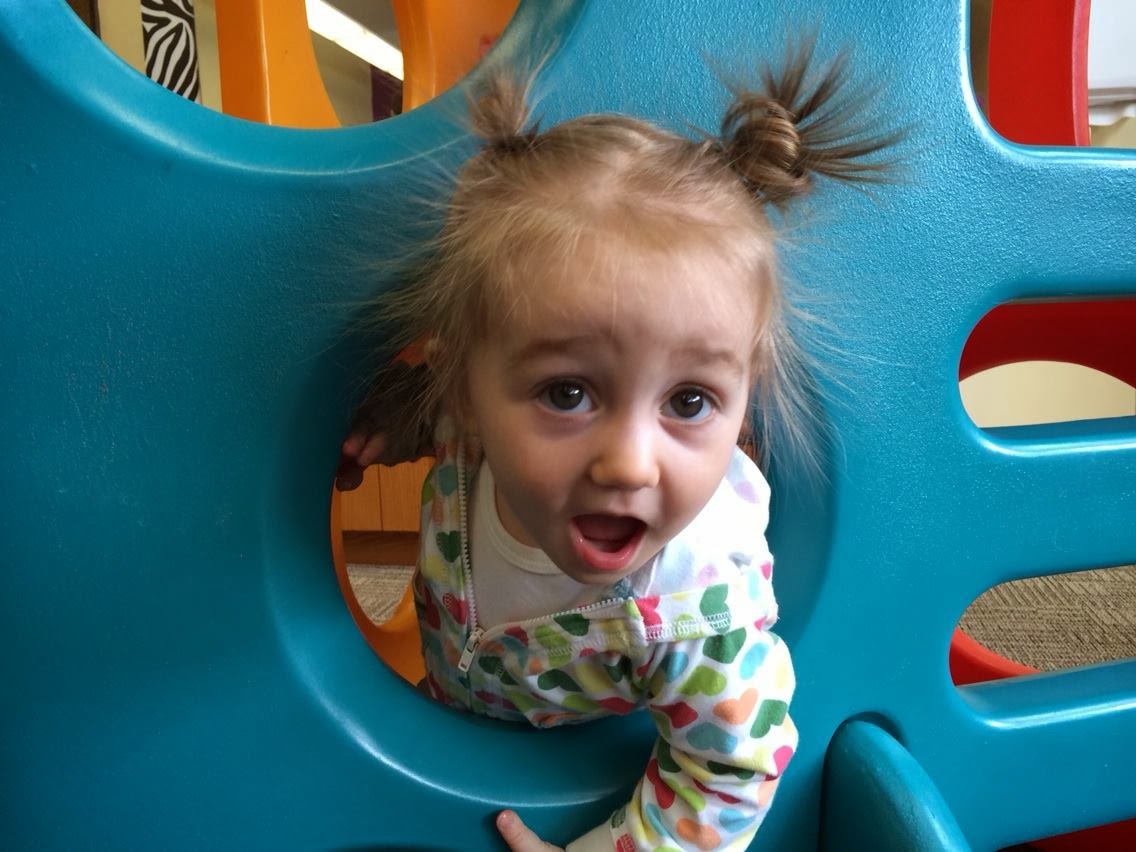 Okay, maybe that is a little dramatic, but we've had some struggles since I had that glorious week off earlier this month. The babe isn't sleeping well, which could be more teething (we try to blame EVERYTHING on teething, though...red cheeks? teething. slight fever? teething. wants to nurse a lot all of the sudden? teething. fussy? teething. weird, messy diapers? teething. biting things/people? teething. won't eat her favorite foods? teething...you get it...the list goes on) but I think it is trouble adjusting to me being back at work. She also now wakes in the morning screaming (truly SCREAMING, with tears shooting out of her eyes), "MAMAMAMAMAMAMA!" Usually I am just about out the door when she wakes, but I get her dressed and put her hair up for the day, anyways, so I get a little time to play and sing with her, even if it means I walk into my classroom later than I should. Note: I've never been late for a class. I have always been there at least 35 minutes before my first class starts, but I have been "late" by a few minutes by what the spoken contract time is this year.